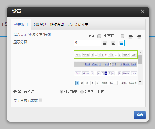 13.指定文章产品分类设置,设置项如下: